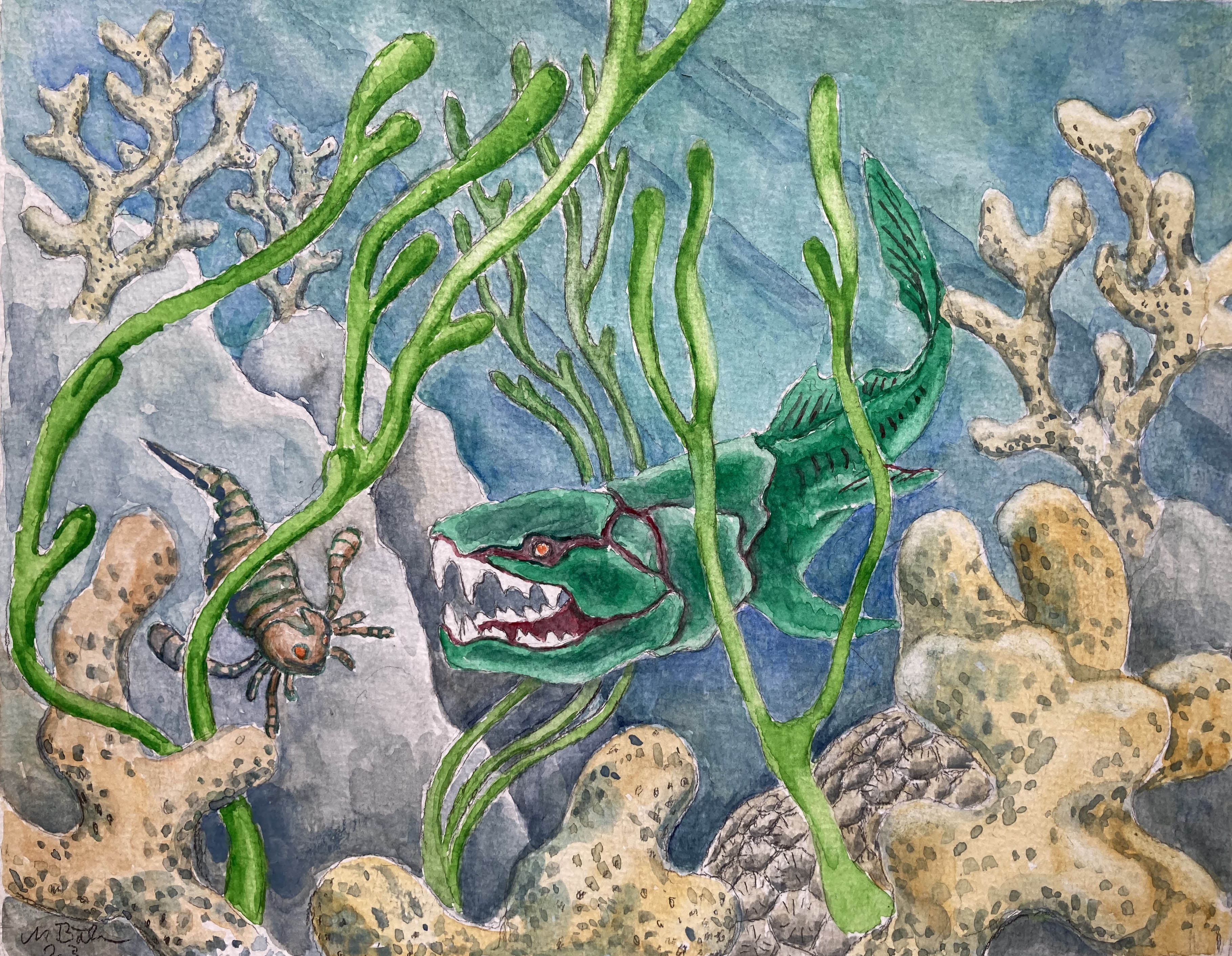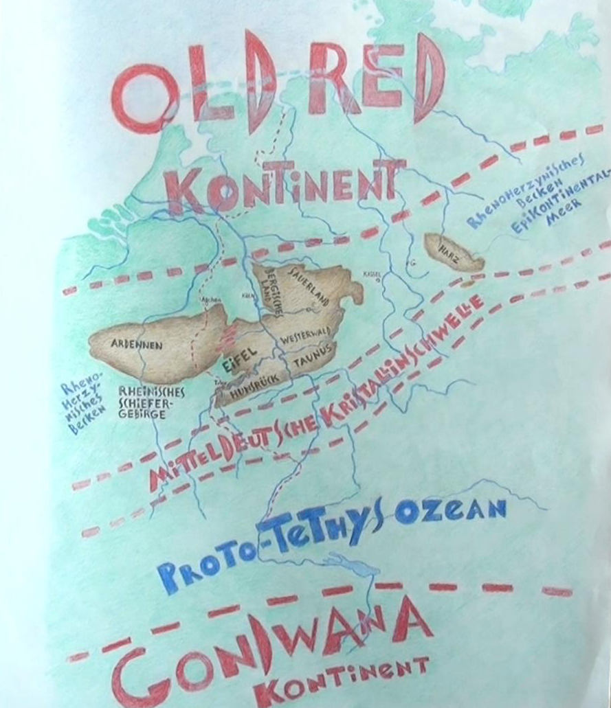 Korallen-Riff, Panzerfisch, Schichtung, Verwerfung, Falte, Muldenstruktur, Unteres und Mittleres Devon |