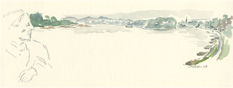 6-K-01-xx-Aq-Herseler-Werth-2009 | Auf einer Rheinterrasse mit Mama, nördlich von Bonn, mit Blick auf das Herseler Werth und das Siebengebirge | ||