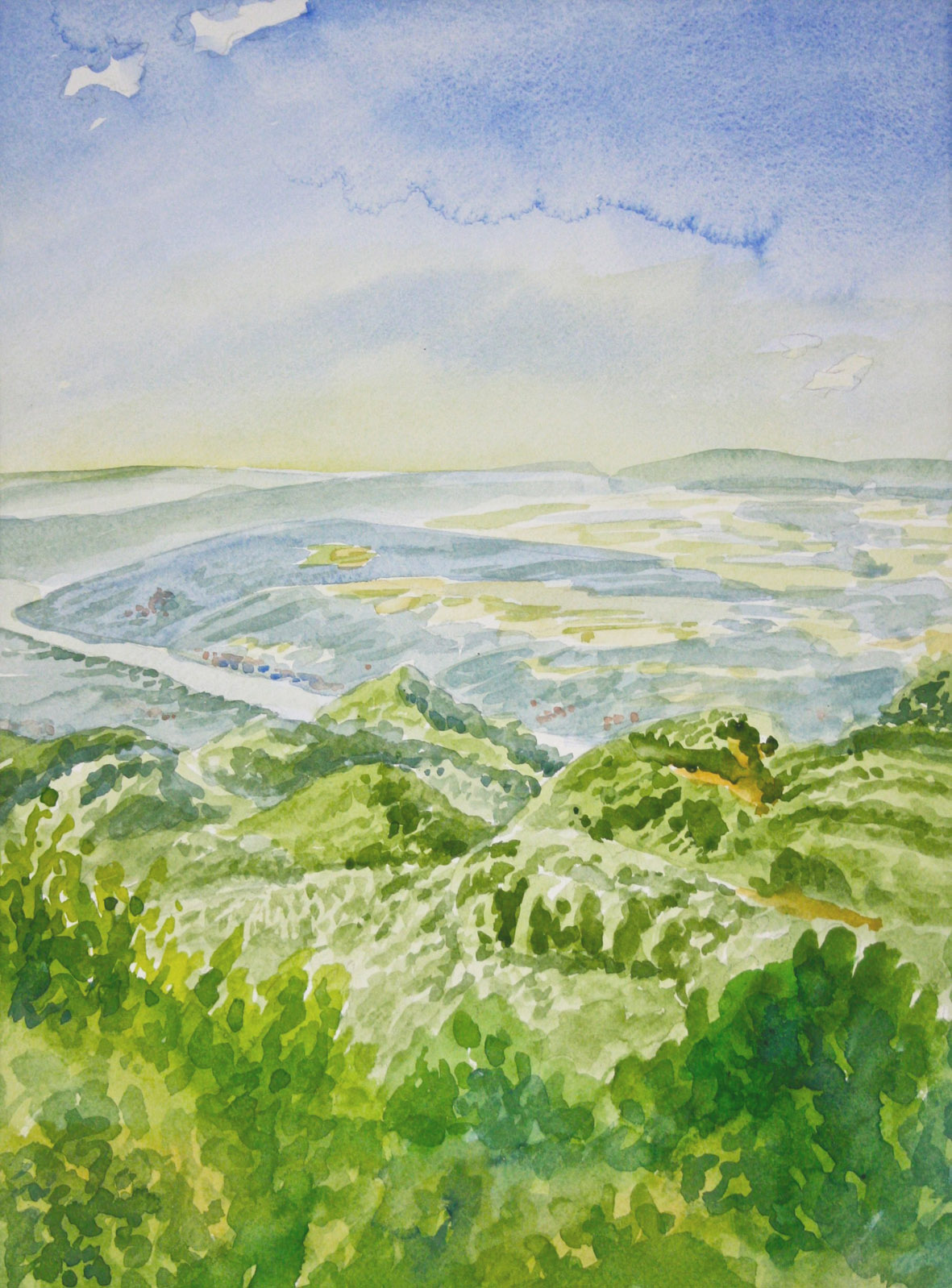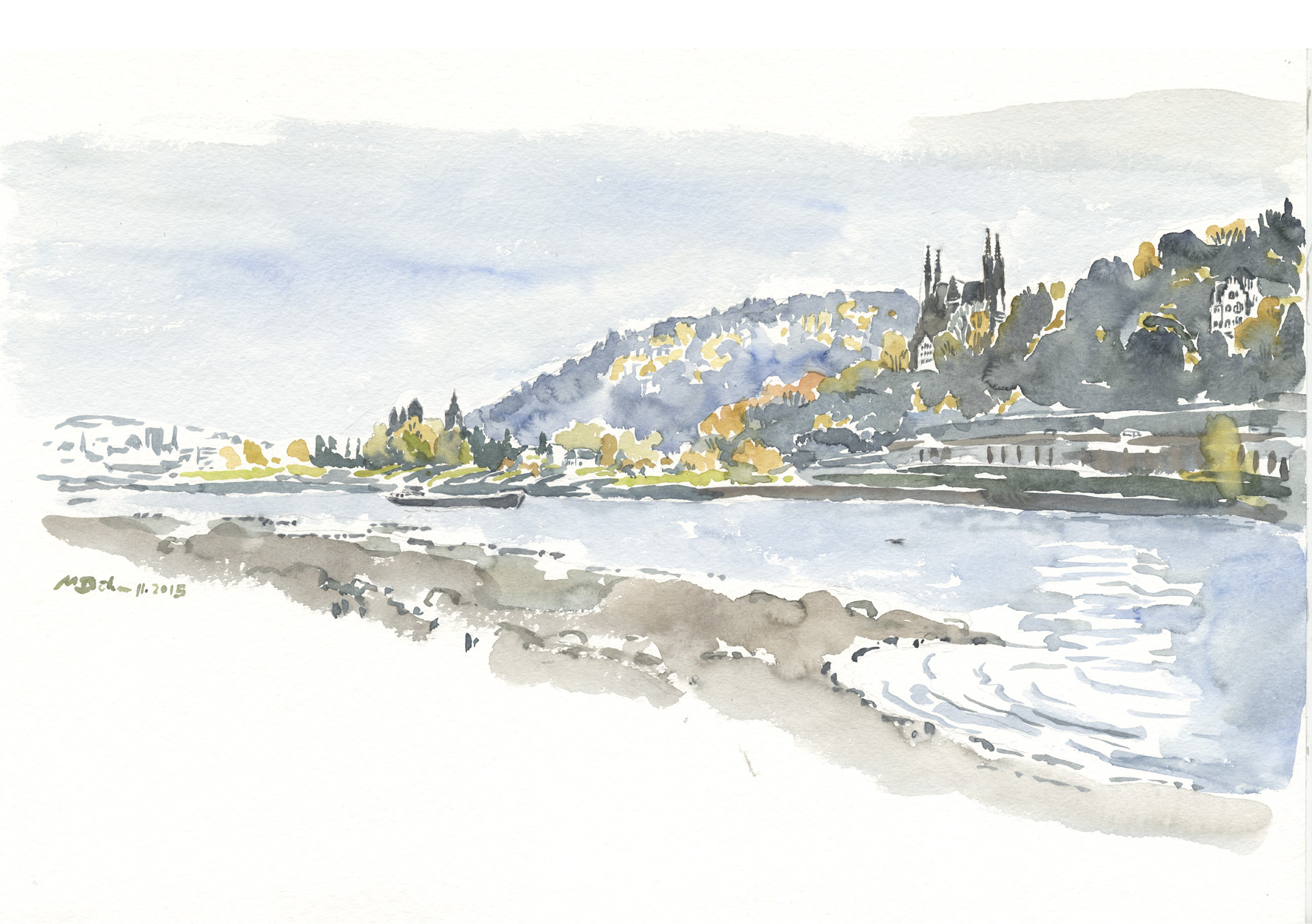 | 6-K-01x-Aq-Nonnenwerth-3-1991 | Insel Nonnenwerth, bei ungemütlichem Wetter vom Drachenfels (oder Ölberg?) schnell gemalt | |||