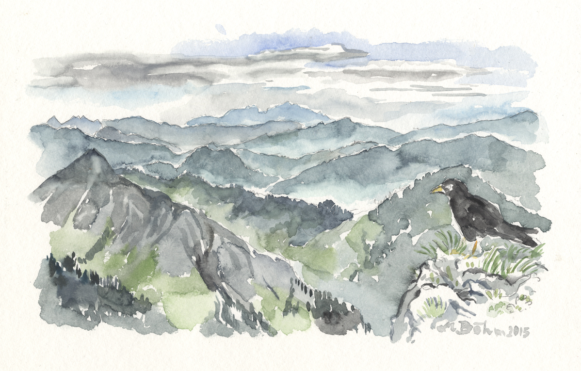 am Güntle Blick bis in die Schweiz, zum Säntis, die Dohle schaut mir zu | |||